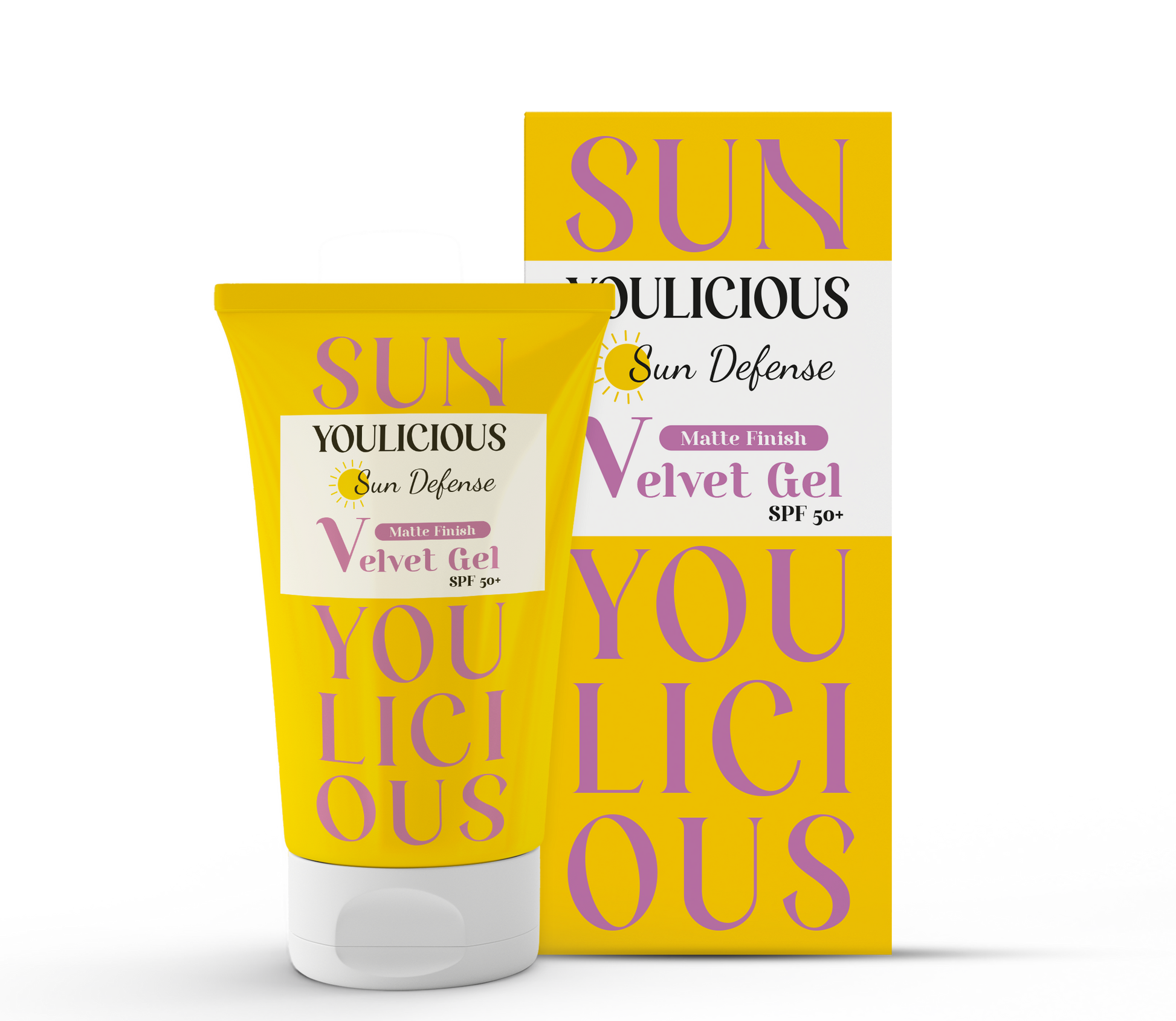 "Youlicious sun defense velvet gel with SPF50+, advanced formula that provides broad spectrum protection (UVB, UVA, blue light & visible light), in addition to photoaging protection.